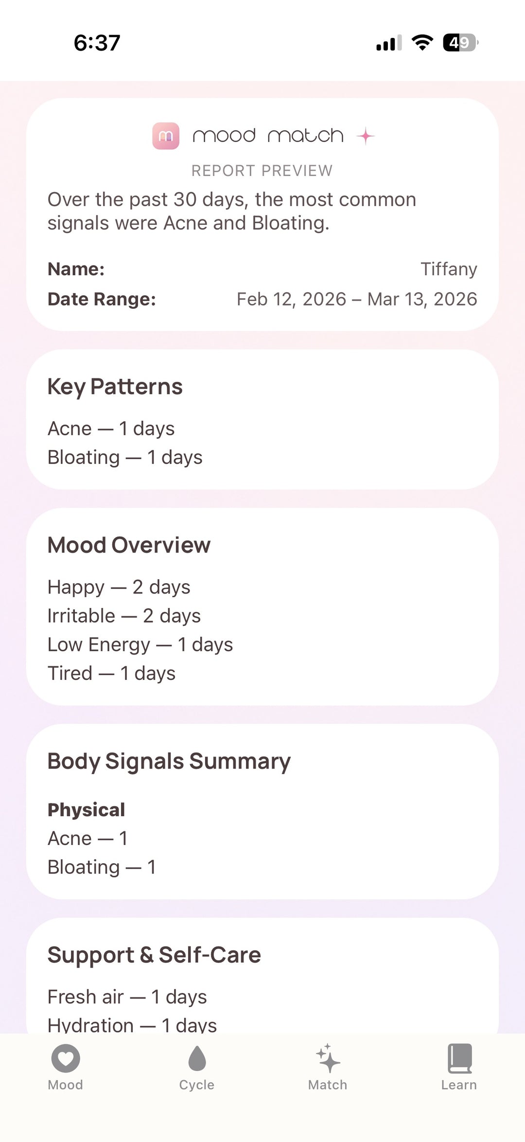Instead of guessing what your body needs, Mood Match helps connect mood, patterns, and wellness support in one simple experience.